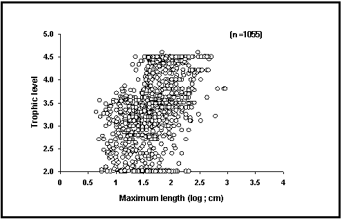De esta manera se han podido estimar numerosos valores de troph para un amplio rango de taxa, particularmente los invertebrados, los peces, las mamíferos marinos y otros grupos cubiertos por las estadísticas FAO, y éstos están actualmente incluidos en FishBase.