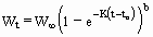donde Wt y W¥ son los pesos correspondientes respectivamente a las Lt y L¥, y b, el coeficiente extraido de una relación talla-peso de tipo: