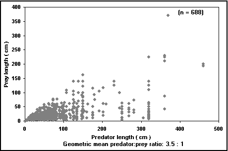 La tabla PREDATORS proporciona una lista de depredadores citados para una especie de pez determinada. Esta tabla incluye el lugar del estudio, el nombre y una clasificación del depredador ; su fase del ciclo vital; la de la presa y su porcentaje, en peso o en volumen, de contribución al régimen alimentario del depredador. Las informaciones recopiladas en esta tabla pueden ser útiles para los científicos pesqueros y los gestores de la biodiversidad, porque las relaciones depredador-presa pueden ayudar a explicar la situación de ciertos stocks de peces. Además, estas informaciones pueden ser usadas para someter a prueba las hipótesis actuales sobre las tallas relativas de las presas y de los depredadores (Recuadro 23 ; véase también Figs. 34 y 35).