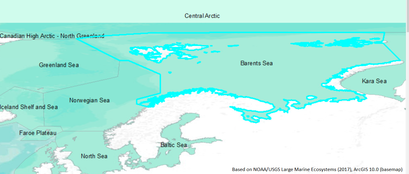 LME SAU No 20. Northeast Atlantic, from Novaya Zemlya Peninsula to Svalvard Island. LME2002, Modified LME 2006, SAU 2008. |