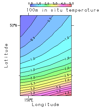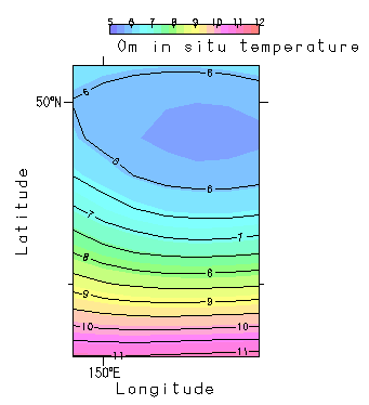 The Oyashio region is a part of the Western Subarcitc Domain, and extends broadly north of about 40° N in the Western North Pacific Ocean and the Western Bering Sea (Dodimean et al., 1963). The Oyashio Current (or Kurile Current) mainly originates in the Sea of Okhotsk, and diverges south of the southern Kurile Islands. A coastal branch of this cold Current flows southward along Northern Japan, meets the warmer Kuroshio Current, and intrudes into Volcano Bay off Sanriku (the northern part of Honshuu) near 142° E. The Oyashio Current is strongest in spring, and the presence of cold current water in Volcano Bay continues till June (Ohtani et al, 1971). This bowl-shaped bay is about 2,300 km2 with a mean depth of 59 m. Surface temperature of Oyashio water varies seasonally from about 0°C in early spring to 20°C in the summer. A seasonal thermocline develops at a depth shallower than 50 m. The temperature-salinity relation is almost uniform at 100 m depth off the south of Hokkaido, with 5°C the highest temperature at 33.6 in salinity (Hata, 1969). Dissolved oxygen is more than 4 mil/l–1 at the 600 m zone in contrast with 1 mil/l–1 at the 100 m zone in the water of the western North Pacific (http://www.na.nmfs.gov/lme/text/lme51.htm). |