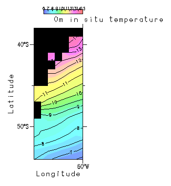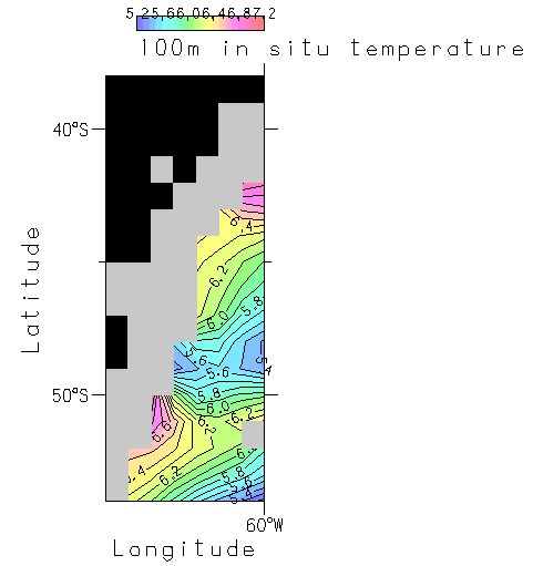 South of the Southeast Brazilian bight, the Ekman transport tends to be directed onshore (Bakun and Parrish, 1991), leading to coastal convergence and downwelling. Major upwelling at the shelf break (Servicio de Hidrografia Naval, 1969; Podesta, 1990) in the southern portion of the LME results from the juxtaposition of the major western boundary current and the shelf, carrying nutrients shoreward across the shelf. In this area, major freshwater outflows and the interleaving of water masses associated with the confluence of the major western boundary flows promotes internal water-column stability. Associated surface fronts represent convergence zones that concentrate food particles. (Elgue, 1989)