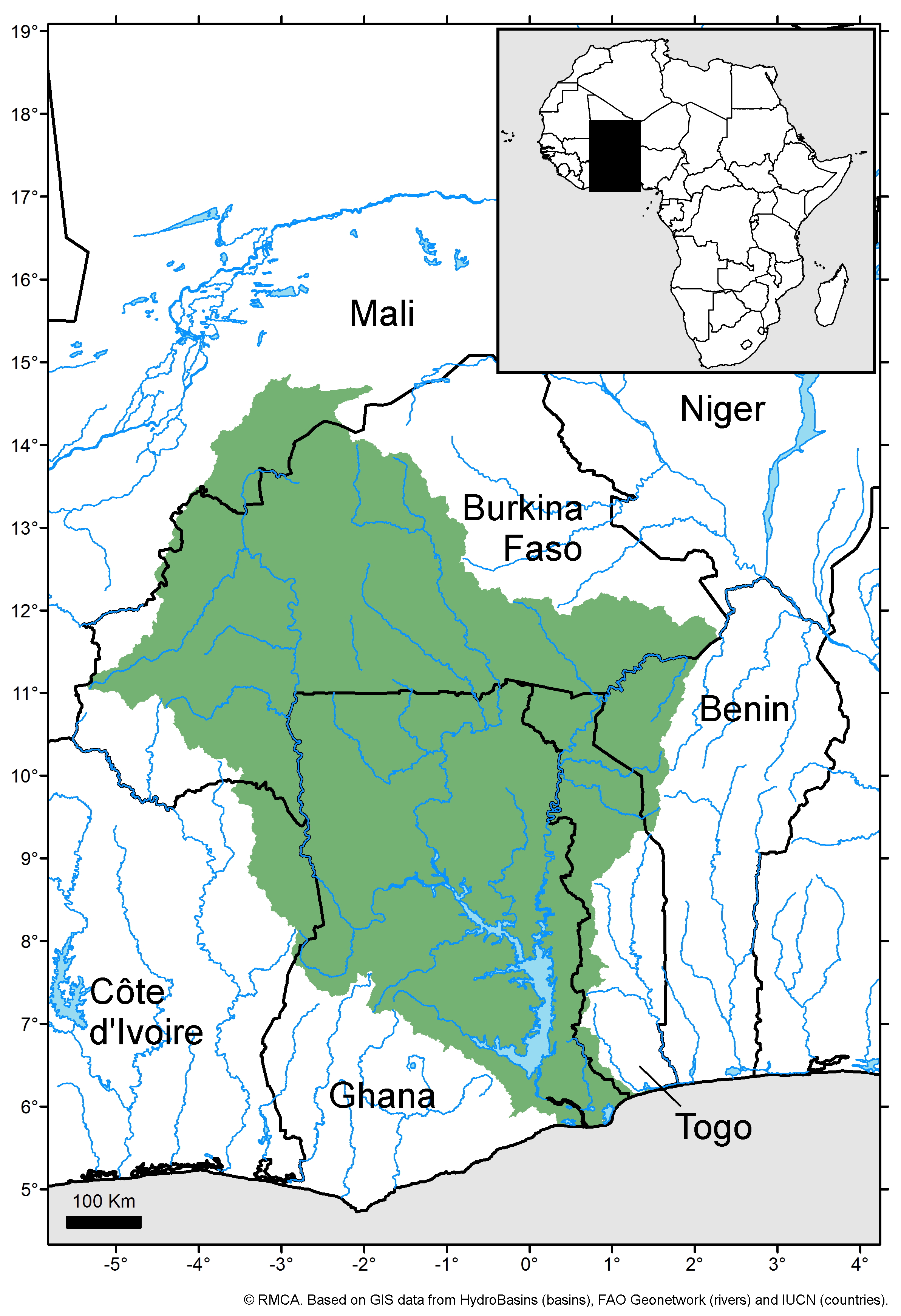 Includes Lake Volta (Ghana), Volta River (Ghana), Red Volta (Burkina Faso), White Volta (Burkina Faso and Ghana) and Black Volta (Burkina Faso, Ghana & Côte d'Ivoire) (Ref. 28192). Ref. 2914 includes Togo in the Volta system. In FishBase further divided in the Volta Delta, Lake Volta and the rivers Oti, White Volta and Black Volta. |