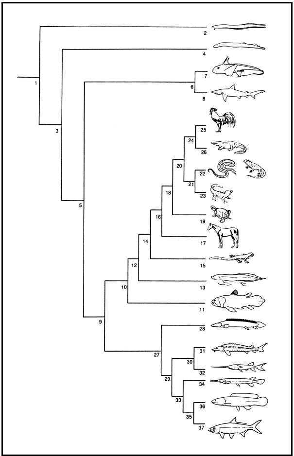 Fig. 5. Cluster analysis of extant of fishes as determined by evidence of common ancestry or by the appearance of fossil forms.