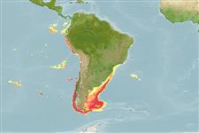 Minimum depth from Ref. 87801. This is an archibenthal species where juveniles are found on hard substrates covered in algae, sponges and bryozoans in sublittoral and shallow waters, and adults are found on muddy or sandy bottoms in deeper waters (Ref. 87801).